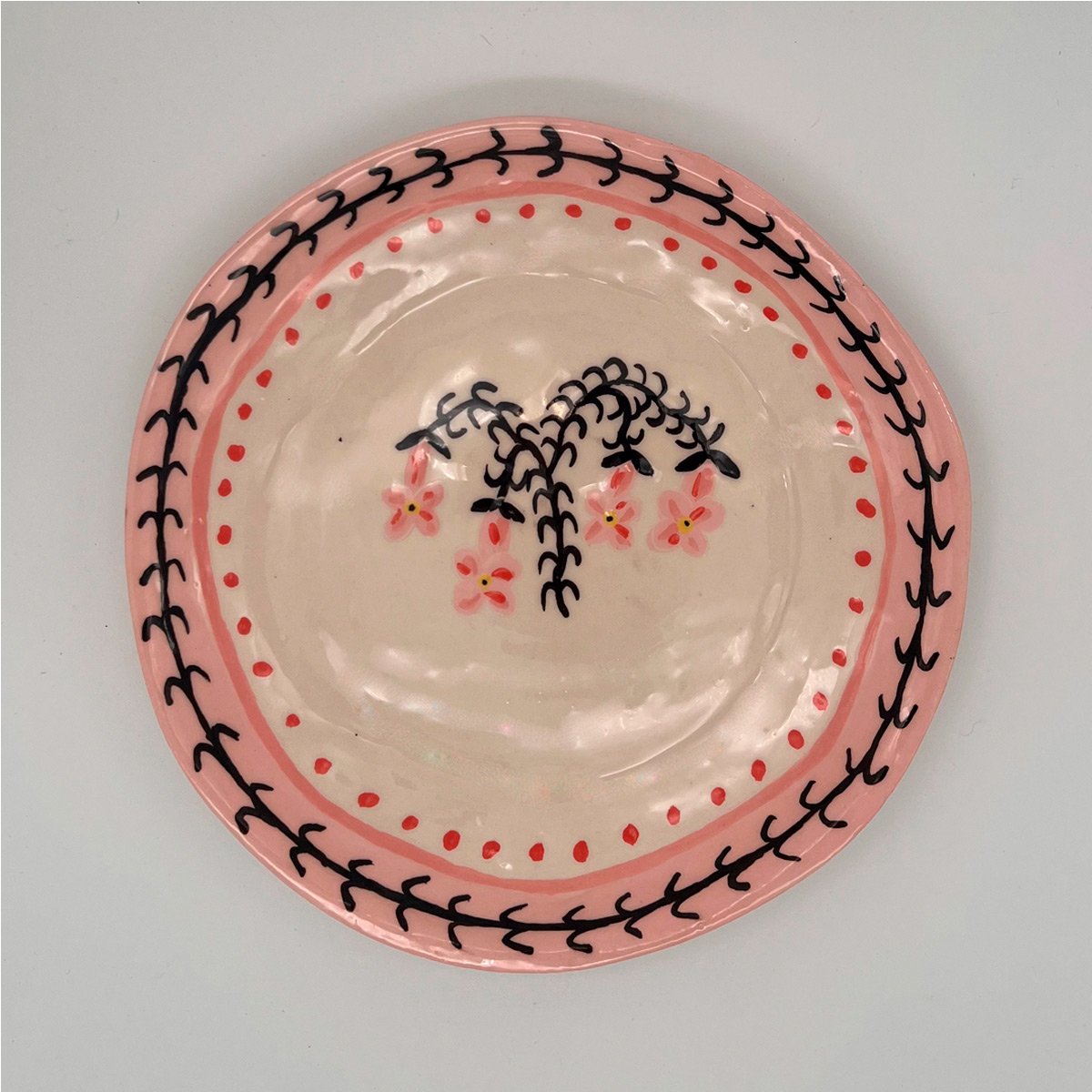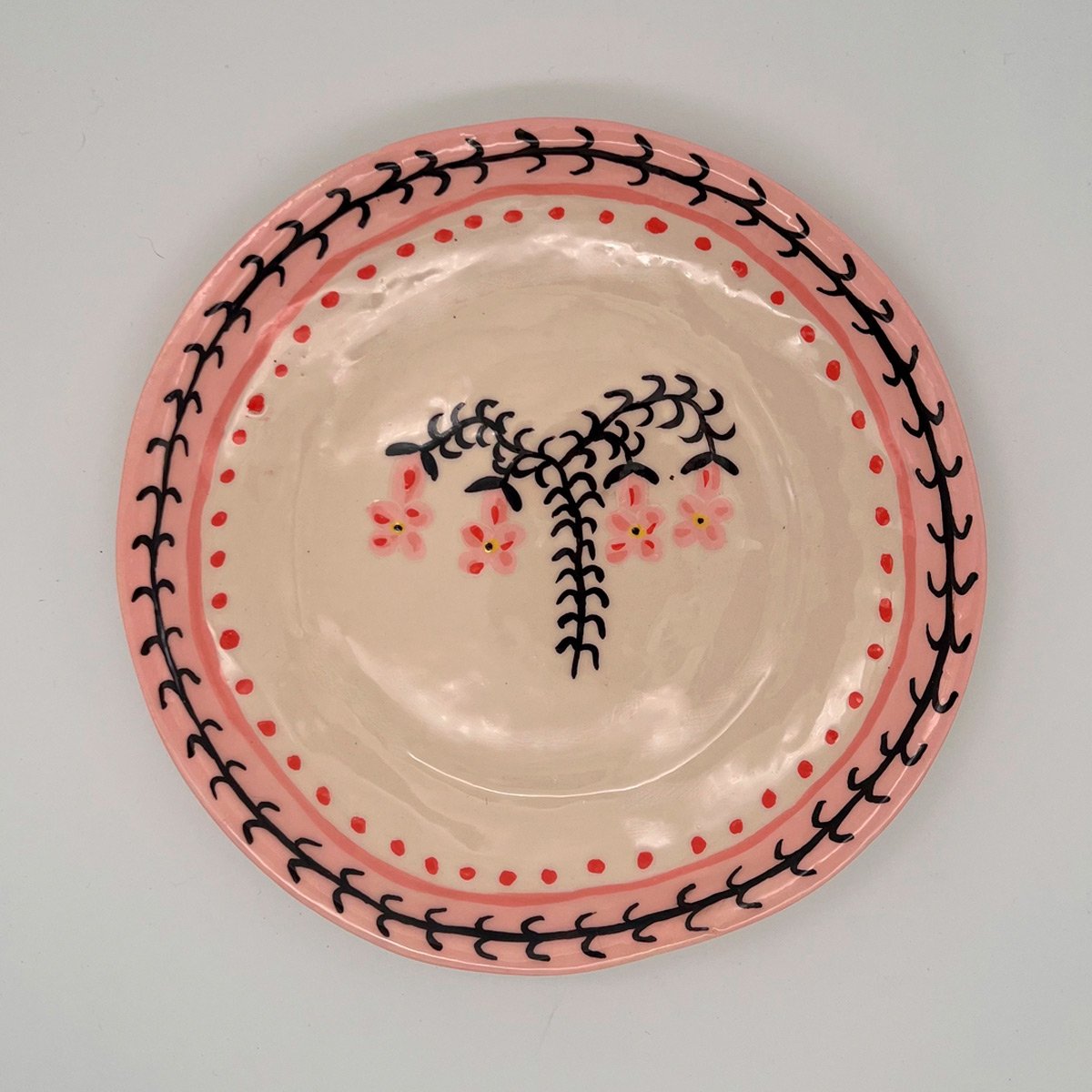 Inspirados en los colores del cerezo en flor. Una versión distinta pero compartiendo la esencia. Esta pieza pertenece a la colección Flores, dentro de nuestra línea de platos hechos y pintados a mano. Cada plato es único y refleja la dedicación del proceso artesanal. Ideal para mesas que buscan diseño, color y autenticidad.Inspirados en los colores del cerezo en flor.
